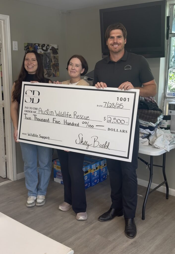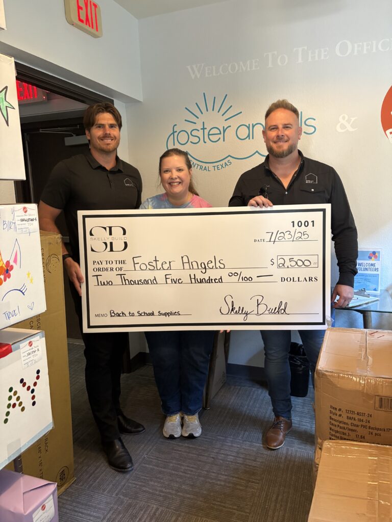 In 2025, Skelly Build also supported several meaningful community initiatives. Our team built a backyard shed to fulfill a Make-A-Wish request, gathered donations and supplies for Austin Wildlife Rescue, provided backpacks and school essentials for children in foster care through Foster Angels, and helped raise funds for Kerr County flood relief, matching $2,500 in donations to support affected families.